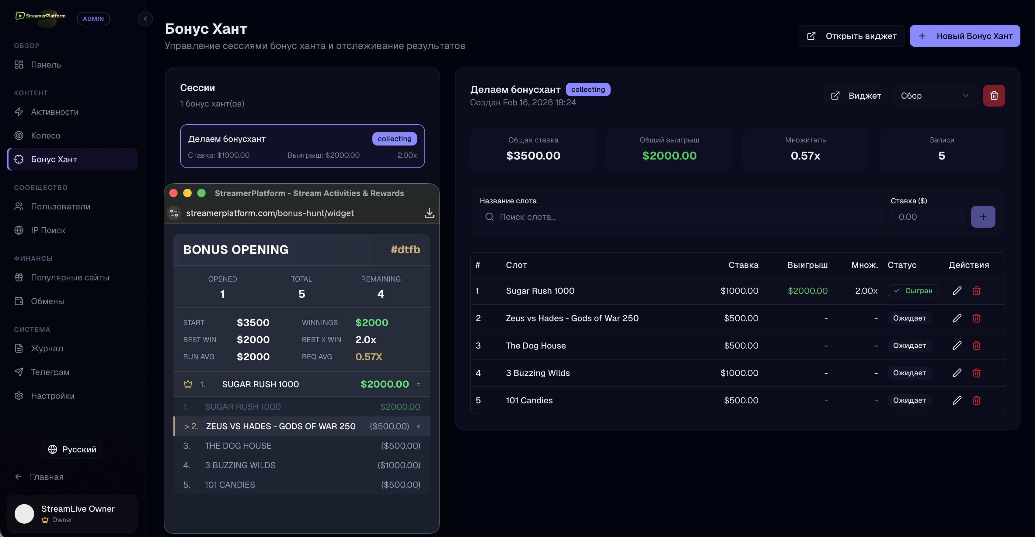 Запускайте бонус-хант вместе со зрителями. Они делают ставки на слоты, следят за результатами в реальном времени и соревнуются за монеты.