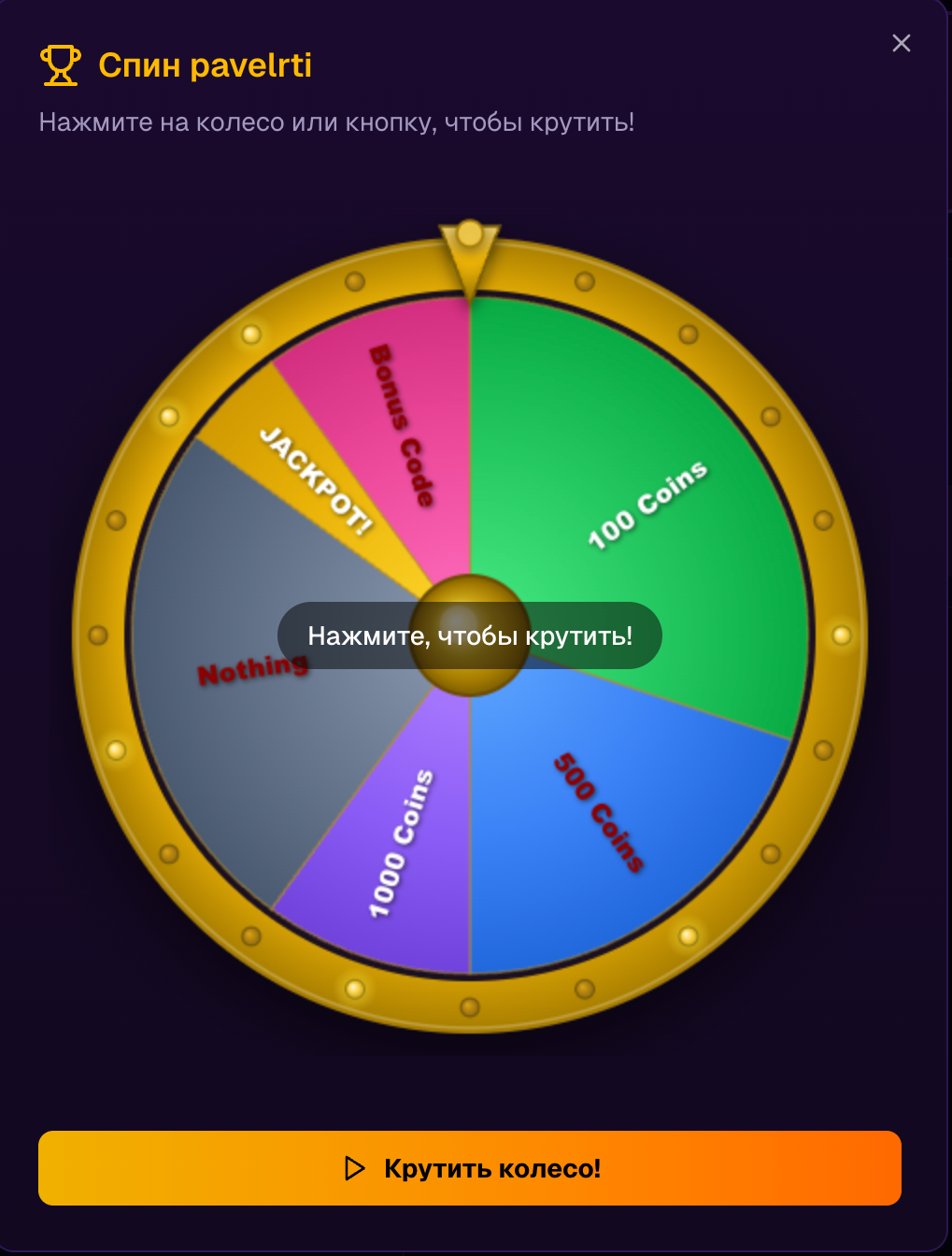 Создайте колесо фортуны, предсказания или раздачу монет в админ-панели за пару кликов.