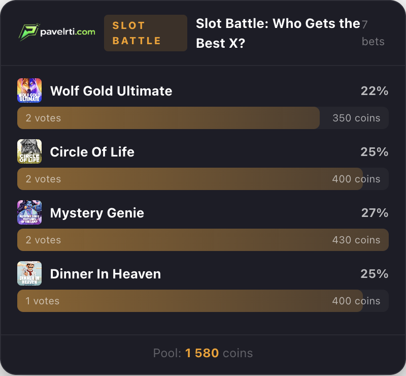 Live slot voting with images, vote bars, percentages, and leader highlight. Shows winning slot after draw.